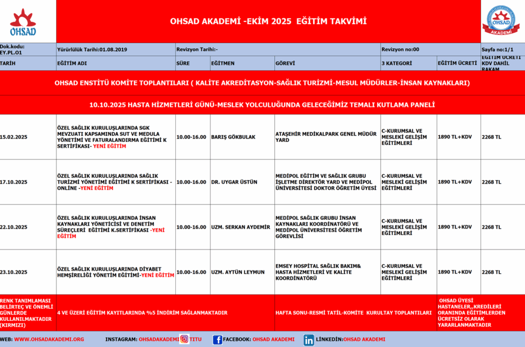 OHSAD AKADEMİ EKİM 2025 EĞİTİM TAKVİMİNİ SUNAR