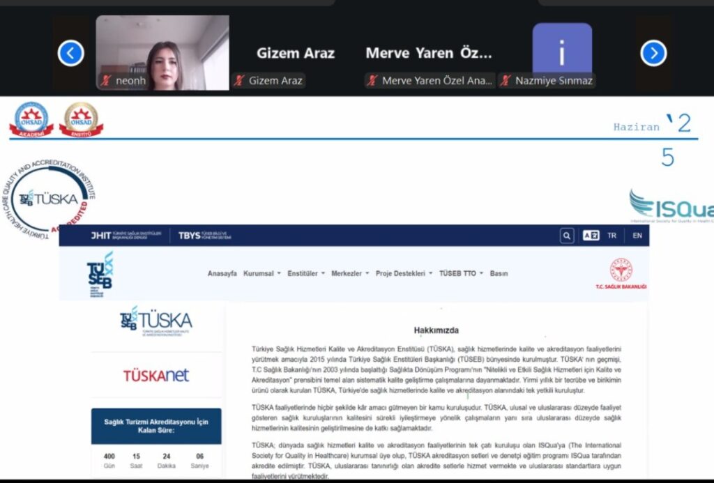 TÜSKA-HASTANE AKREDİTASYON BAŞVURU VE DENETİM SÜRECİ DENETİM AJANDASI YÖNETİM EĞİTİMİ OHSAD KALİTE AKREDİTASYON KOMİTESİ ÜYESİ UZM. EMİNE ÖNAR TARAFINDAN SEKTÖR KALİTE DEPARTMAN YÖNETİCİLERİNE SUNULMAKTADIR.