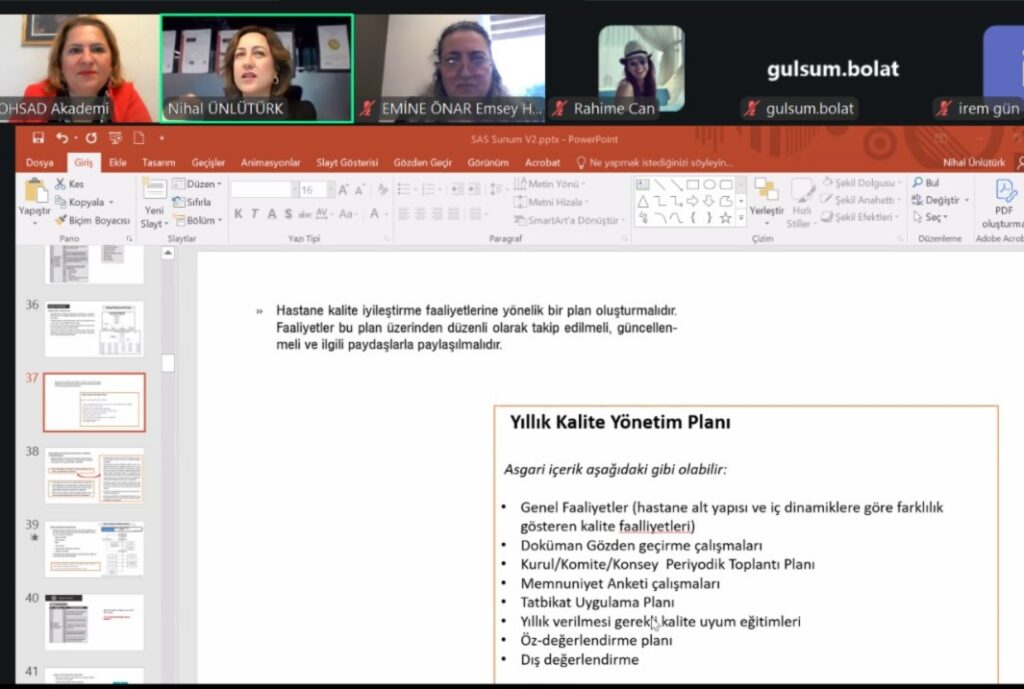 25 KASIM SAĞLIK KURUMLARINDA SAS AKREDİTASYON STANDARTLARI VE UYGULAMA EĞİTİMİ MEDİCALPARK GRUP. UZM NİHAL ÜNLÜTÜRK TARAFINDAN VERİLDİ.