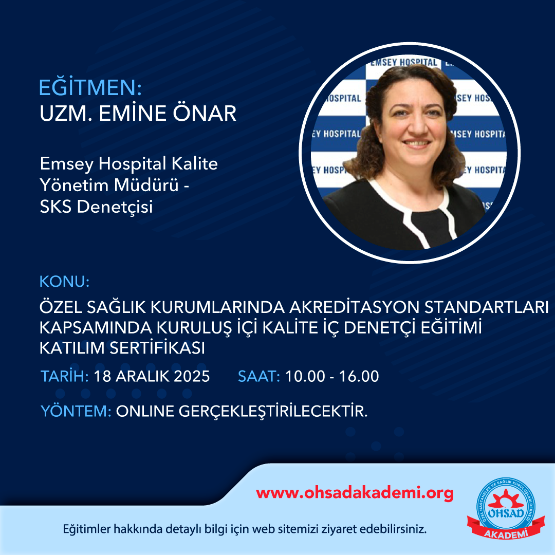 18 ARALIK ÖZEL SAĞLIK KURUMLARINDA AKREDİTASYON STANDARTLARI KAPSAMINDA KURULUŞ İÇİ KALİTE İÇ DENETÇİ KATILIM SERTİFİKASI -ONLİNE