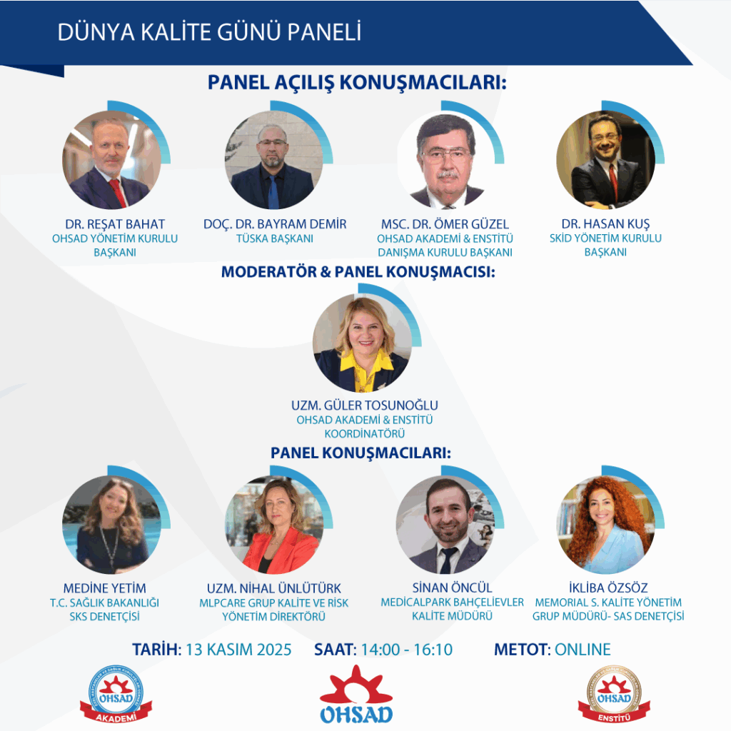 10.10.2025 Hasta Hizmetleri Meslek Günü Kutlama Etkinlik Paneli, OHSAD YKB. Dr. Reşat Bahat ,OHSAD ADK Başkanı MSc. Dr. Ömer Güzel , ADK Başkan Yard. Hüseyin Çelik Moderatör Mba. Güler Tosunoğlu ve değerli eğitmenler sunumunda,Türkiye geneli 700 katılımcı ile gerçekleşti.