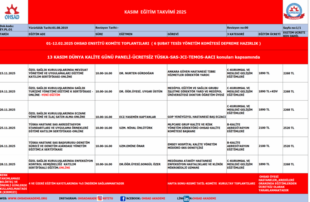 OHSAD AKADEMİ KASIM 2025 EĞİTİM TAKVİMİNİ SUNAR